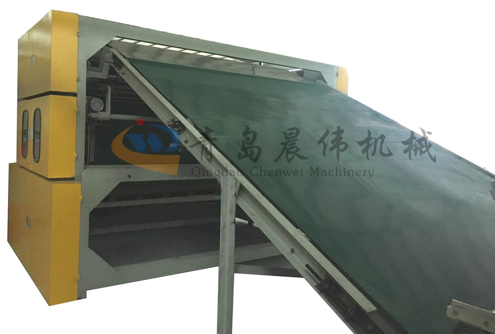 5. CWPW-鋪網(wǎng)機(jī):將梳理后的纖網(wǎng)均勻折疊,垂直鋪設(shè)成型后輸送至下道工序,適用于沙發(fā)、床墊、椰棕床墊等高回彈性產(chǎn)品生產(chǎn),適用于直立棉產(chǎn)品生產(chǎn)