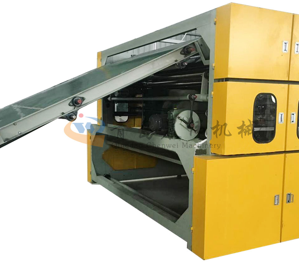 4. CWSL-梳理機(jī):?jiǎn)五a林梳理機(jī)主要是將前道工序棉網(wǎng)層進(jìn)行單纖維狀態(tài)分散過程,并且等寬均勻的輸出到鋪網(wǎng)機(jī),單錫林梳理機(jī)適用于針刺棉、直立棉等無紡布生產(chǎn)線最核心部位。高速高產(chǎn),出網(wǎng)速度高,有效工作機(jī)幅寬,產(chǎn)量高梳理效果好,設(shè)備穩(wěn)定不易故障。