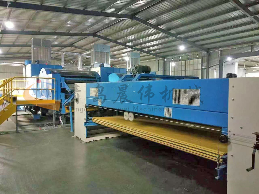 5. CWPW-鋪網(wǎng)機(jī):用于將梳理纖網(wǎng)通過移動小車交叉折疊為所需幅寬和定量的多層纖網(wǎng),以供后道工序使用。鋪網(wǎng)輥采用特殊結(jié)構(gòu),加裝壓網(wǎng)輥和導(dǎo)流板,不飄網(wǎng)不起皺,五只大功率電機(jī)精確控制各部件的運動,電動輸出簾高度調(diào)節(jié)裝置