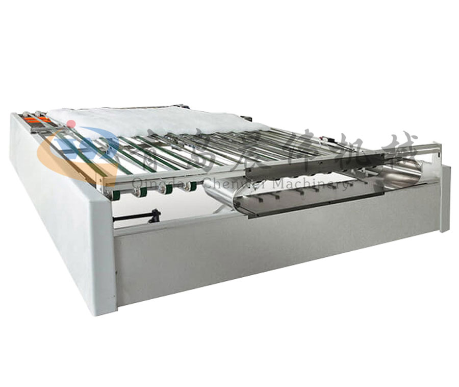 7. CWZT-裝套機(jī):將定好寬幅經(jīng)過烘箱定型成品的棉胎裝進(jìn)被套,自動裝套。